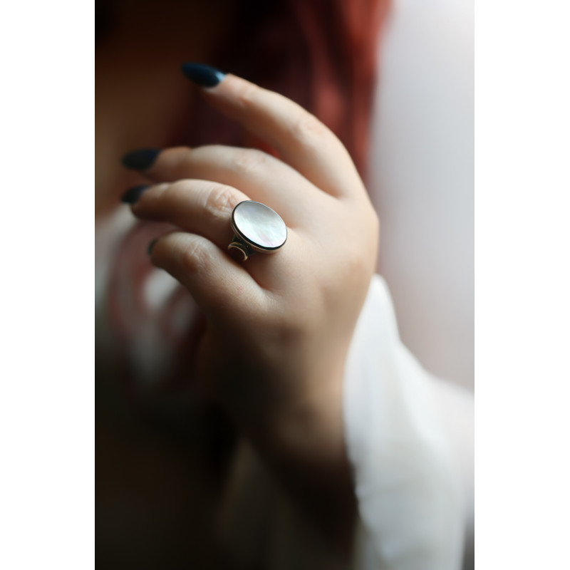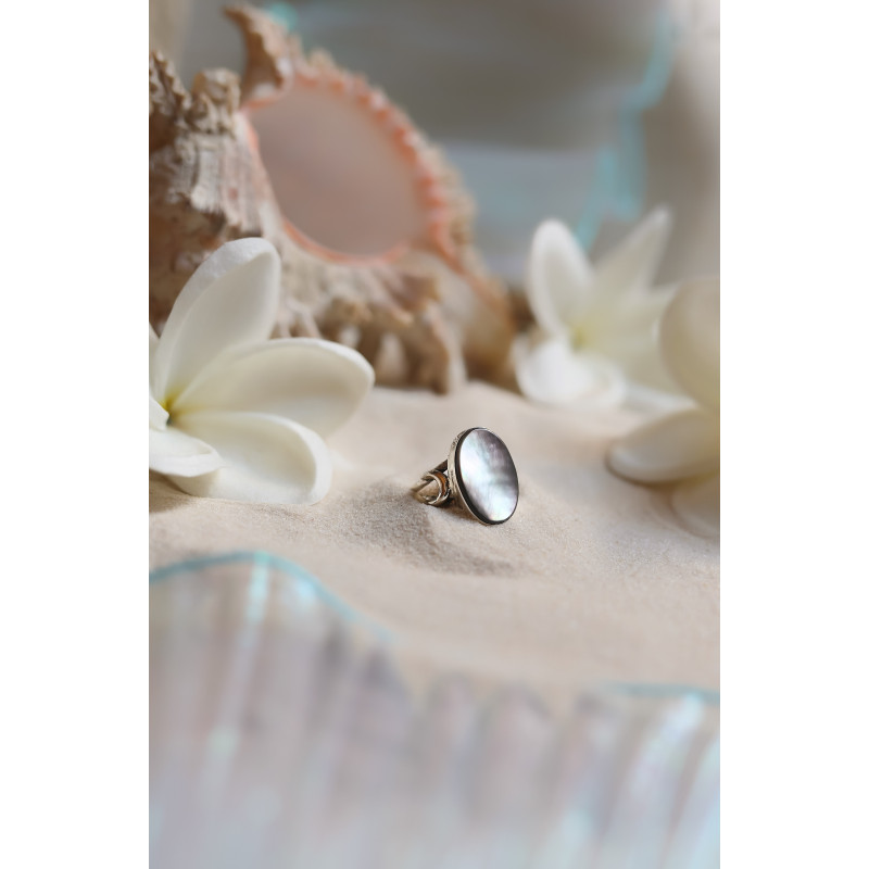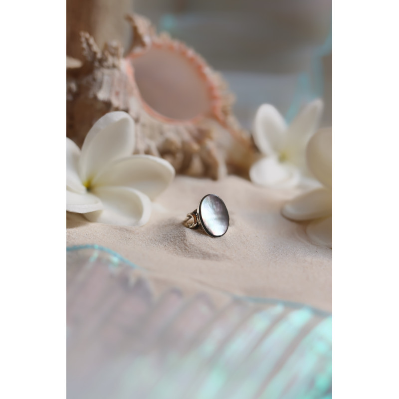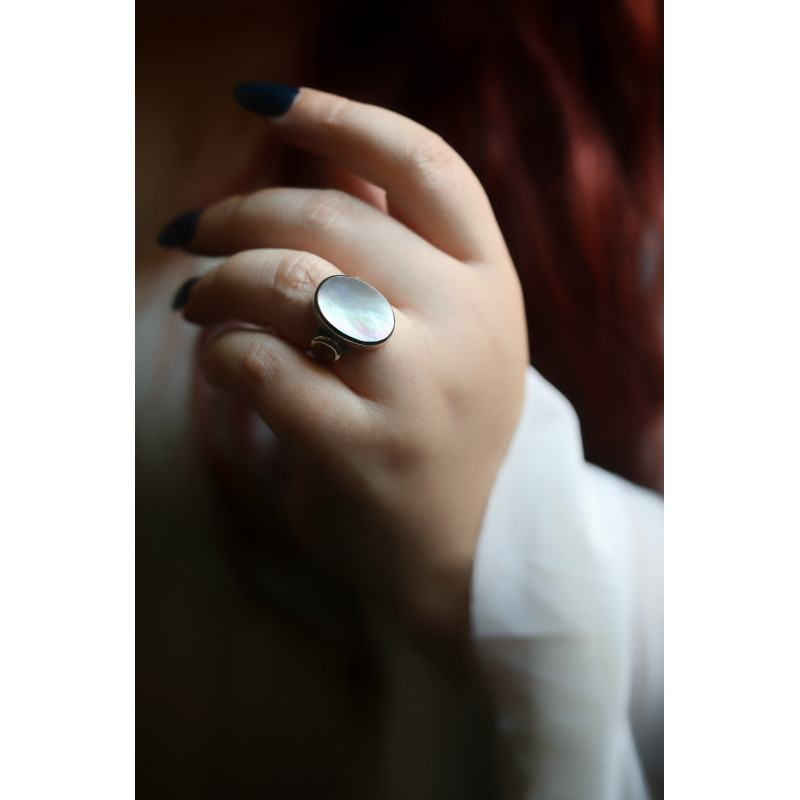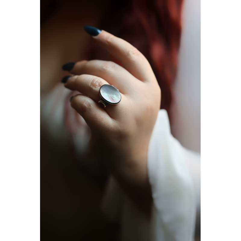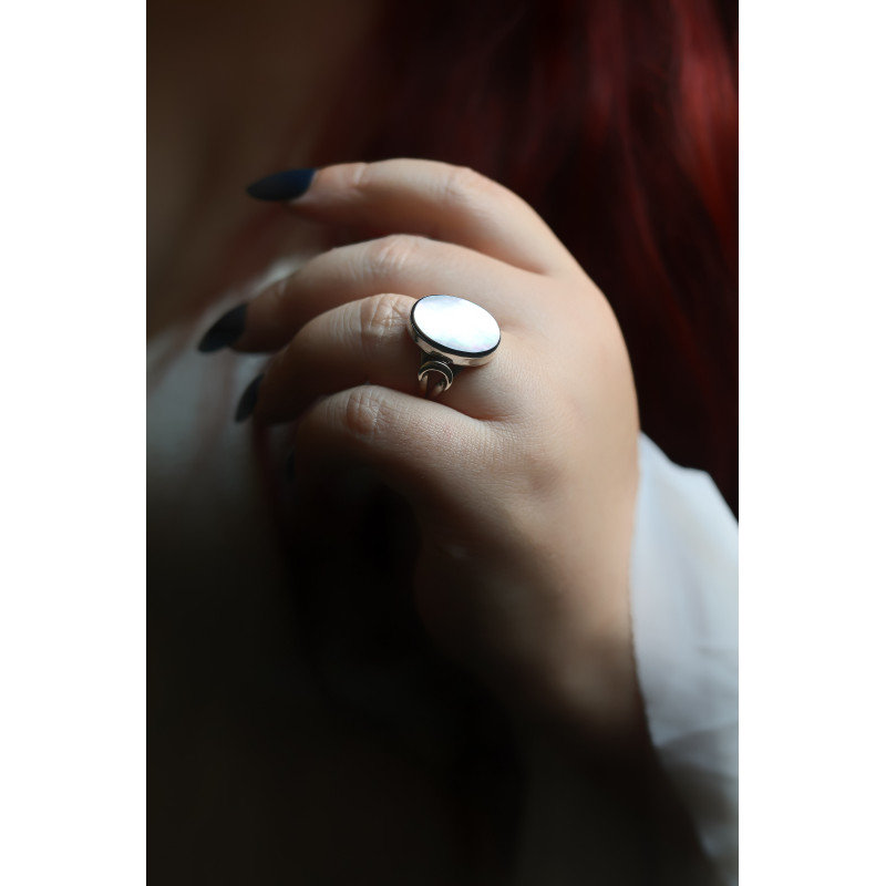 Bague ~ Hina - Fille de la Lune ~ talisman en argent massif 925 qui sous l'œil de la lune protégent chacune d'incroyables pierre de nacre noire de Tahiti