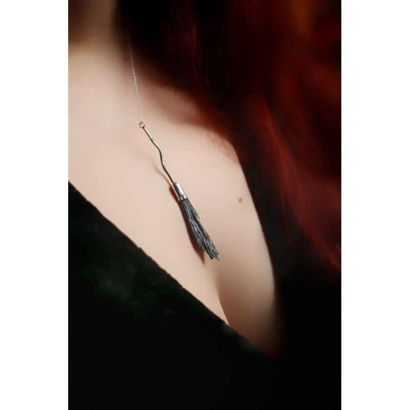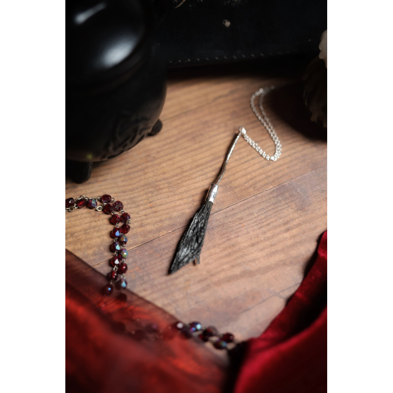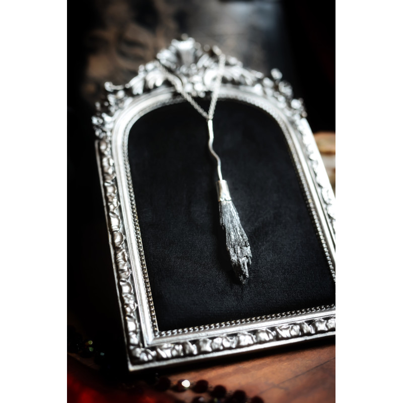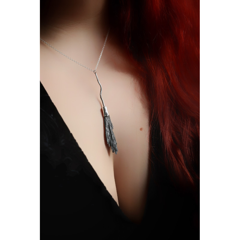 Collier ~ Sous la protection des Sorcières ~ talisman en argent massif 925. Des balais magiques, protégeant d'incroyable pierres de cyanite noire brute que j'ai habillées d'argent