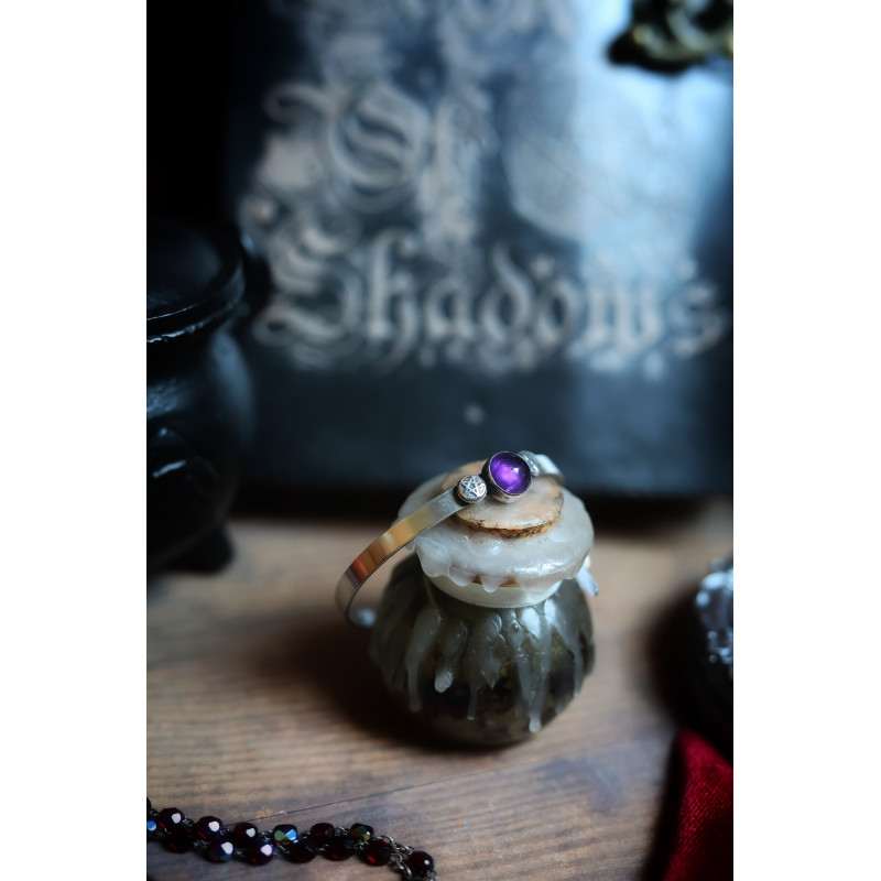 Bracelet ~ Les héritières de la Cailleach ~ en argent massif 925, jonc, réglable, orné de pierre magique et de symboles puissants