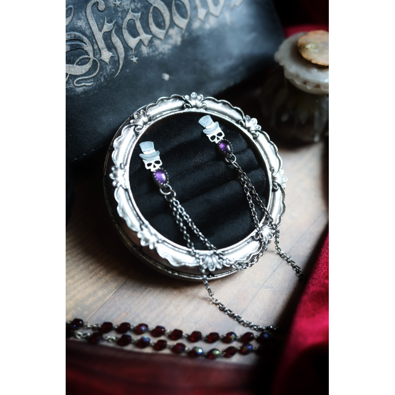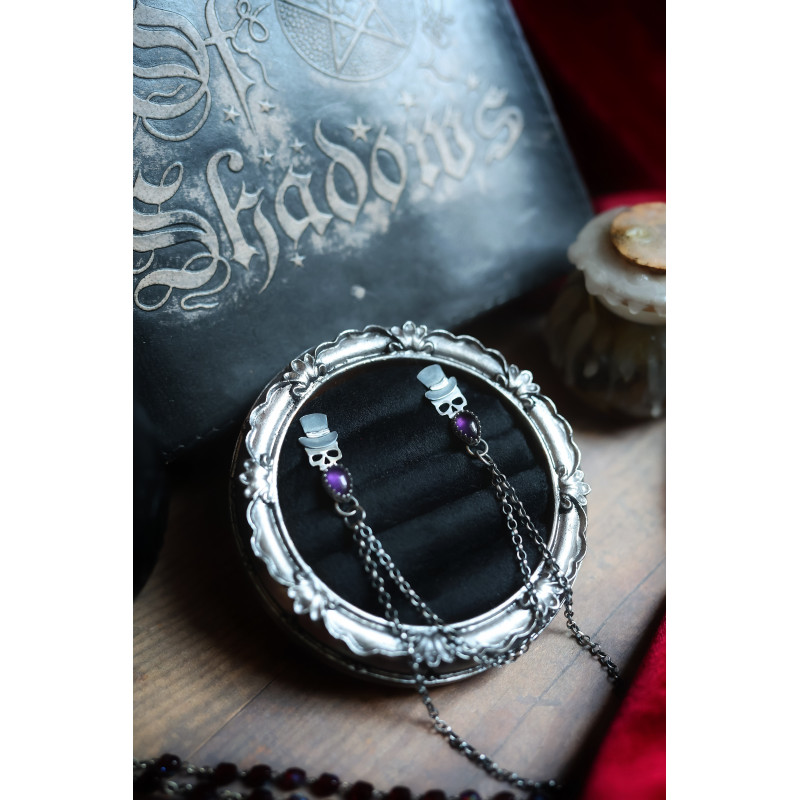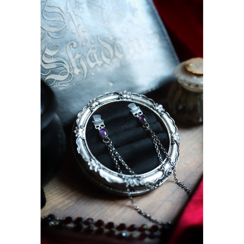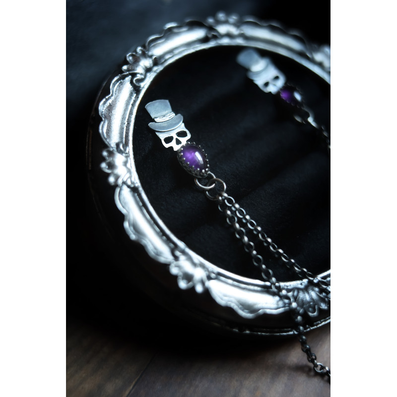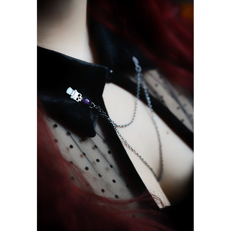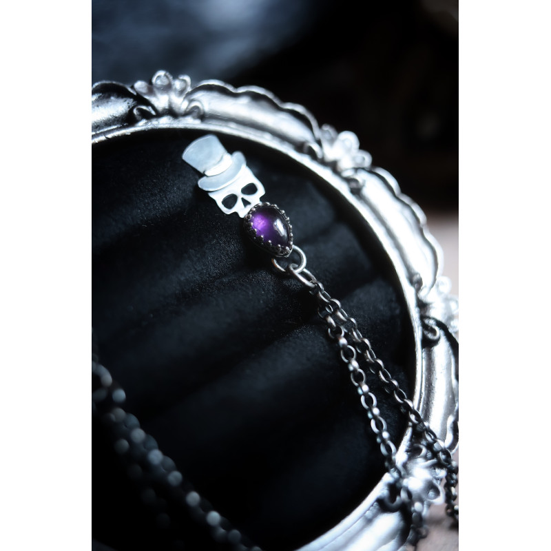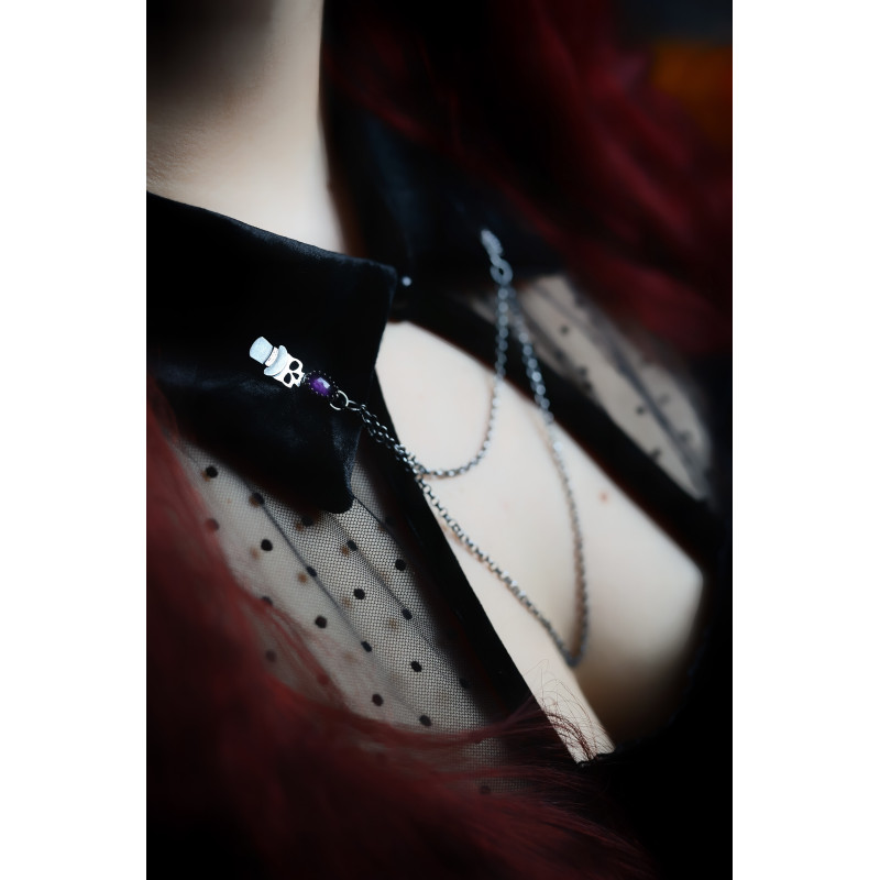 Bijou de col ~ Le Souffle des ombres ~ talisman en argent massif 925. Bijou de col en l'honneur du Baron Samedi, protégeant deux pierres d'améthyste au violet profond.Avec son système de pin's il peut être accroché partout. Sur un col, sur une chemise, pour fermer une écharpe ou un gilet, ou même en décoration sur un sac ou des chaussures