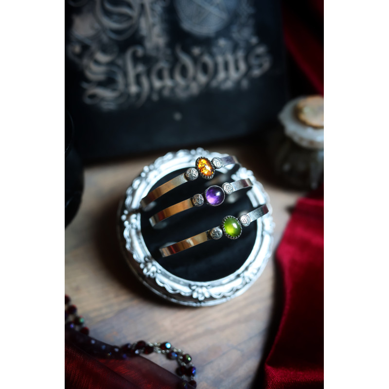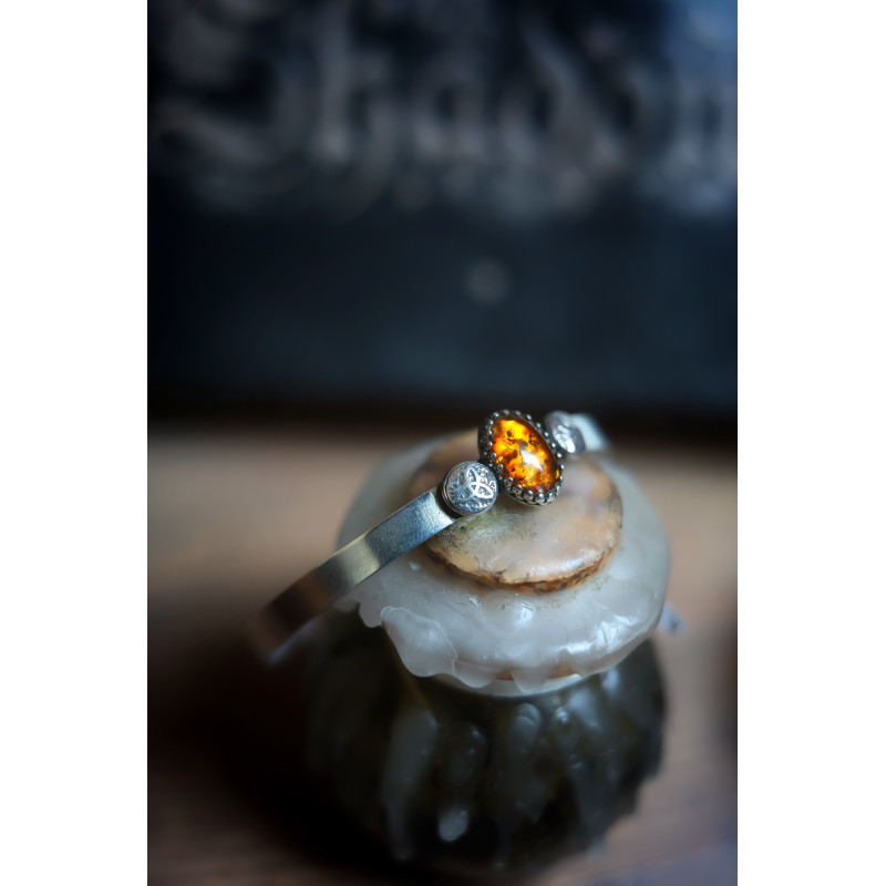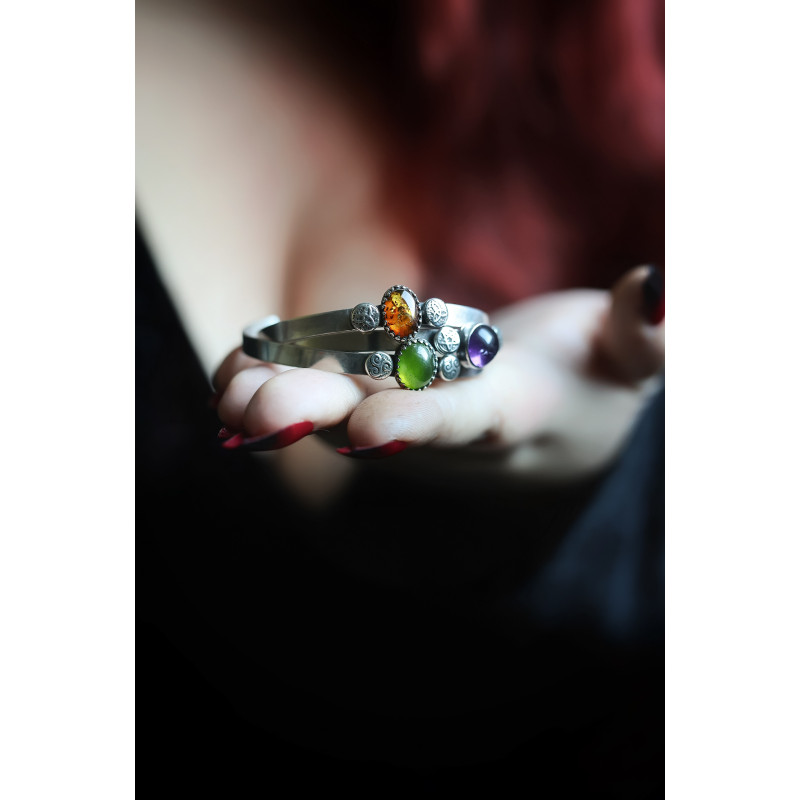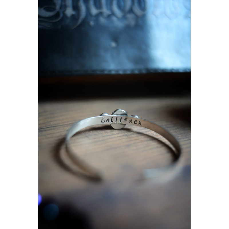 Bracelet  ~ Les héritières de la Cailleach  ~ en argent massif 925, jonc, réglable,  orné de pierre magique et de symboles puissants