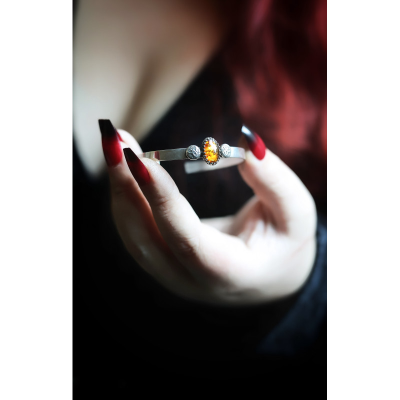 Bracelet  ~ Les héritières de la Cailleach  ~ en argent massif 925, jonc, réglable, orné de pierre magique et de symboles puissants