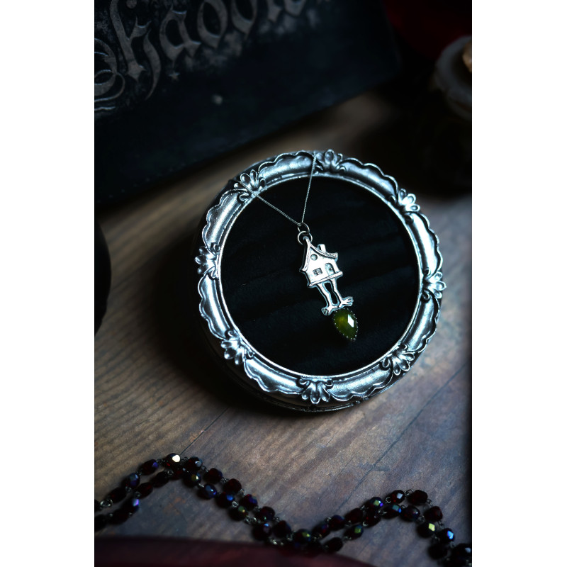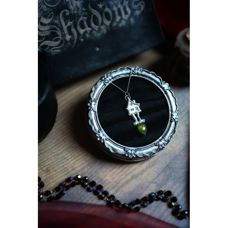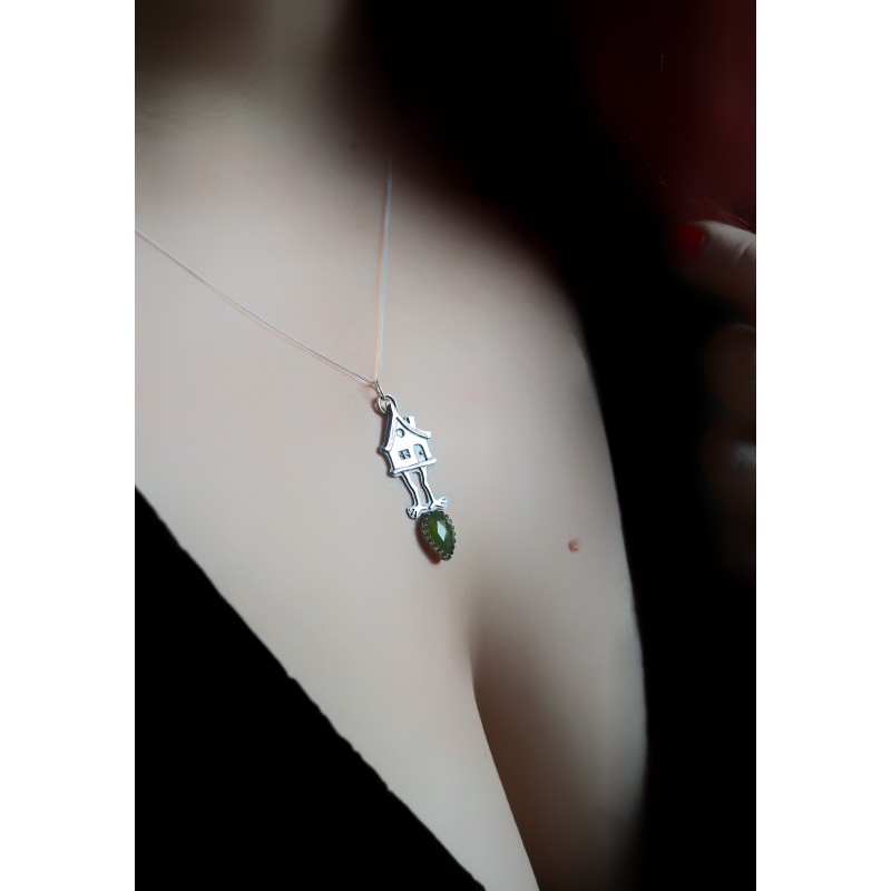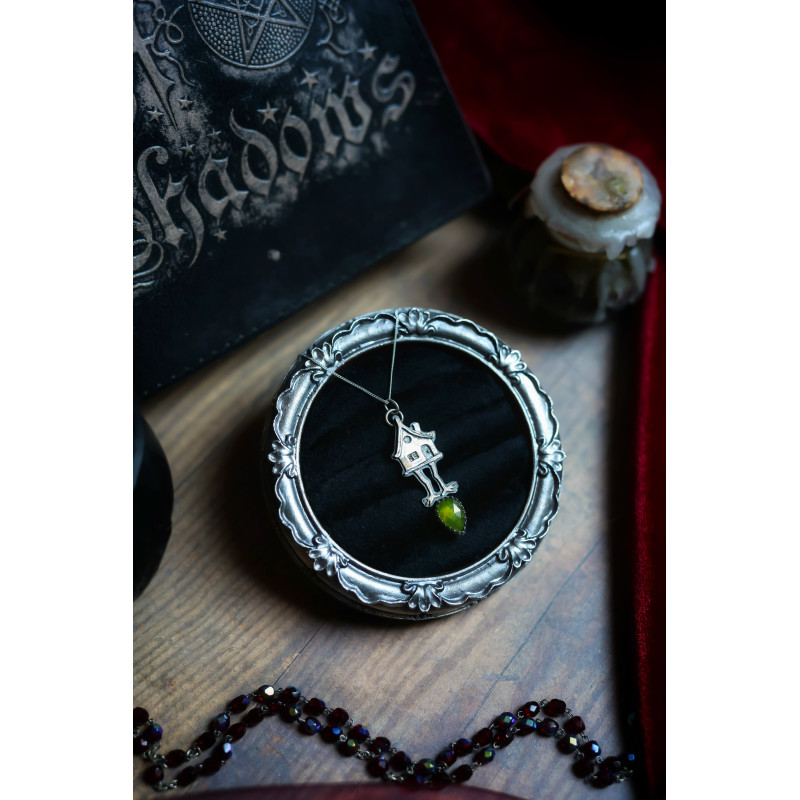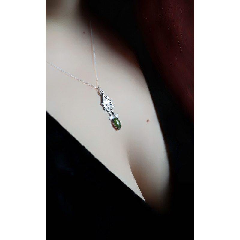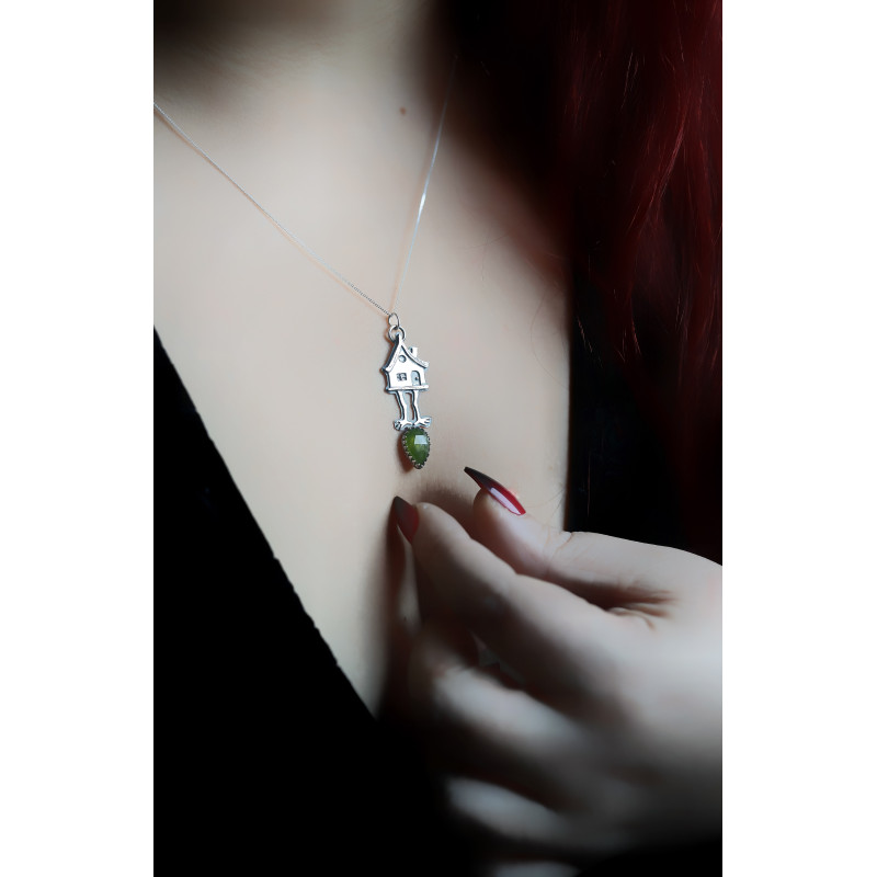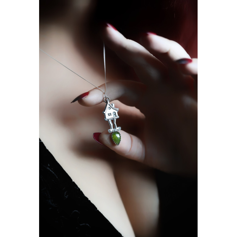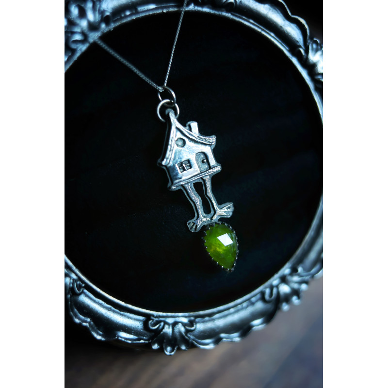 Collier ~ Baba Yaga - L'épreuve ~ talisman en argent massif 925. Un médaillon talisman à l'honneur de Baba Yaga. Sa cabane si singulière ornée d'une merveilleuse pierre de vésuvianite au vert mousse mystique. Pour toujours garder son pouvoir de transformation près de vous
