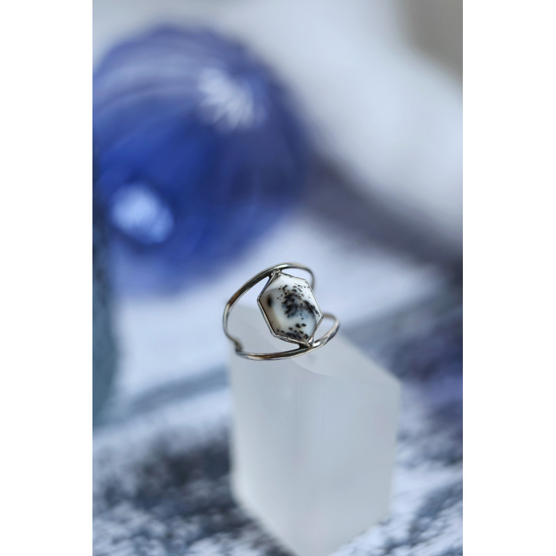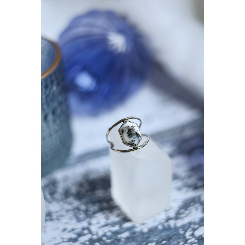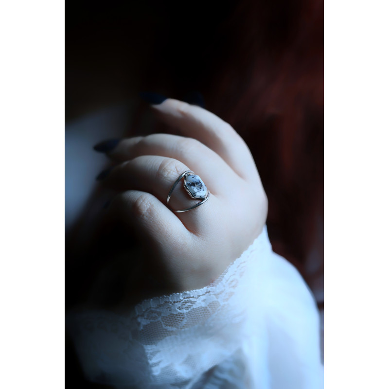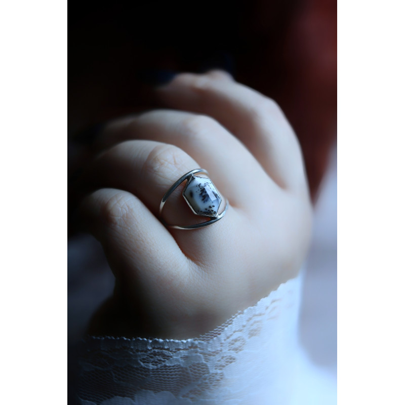 Bague ~ Les premières neiges ~ talisman en argent massif 925. Douces et légères, entièrement faites main, protégeant chacune une incroyable pierre d'agate dendritique dans laquelle se dessine avec magie les premières neiges